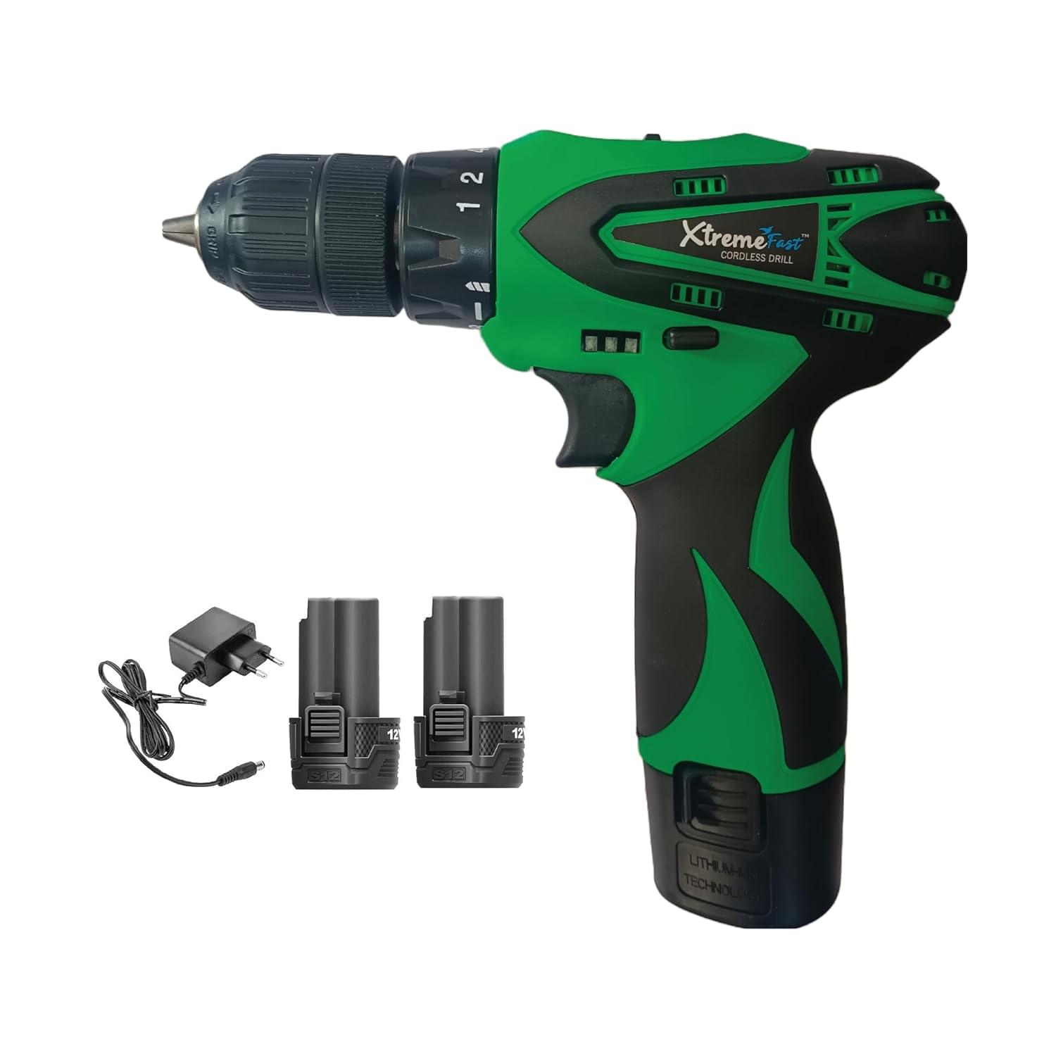 XtremeFast™ Cordless Drill Screw Driver 10mm Keyless Chuck 12V with 2 Battery and 1 Charger